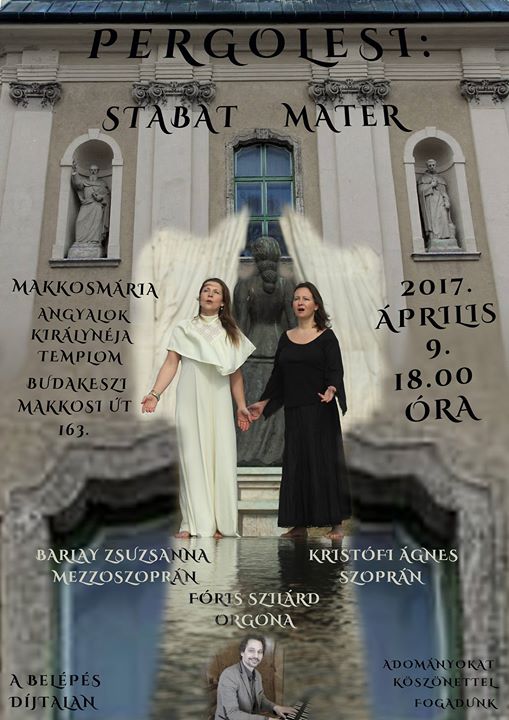 Április 9-én, virágvasárnap 18 órakor Pergolesi: Stabat Mater c. művét adják elő a Makkosmáriai Kegytemplomban.